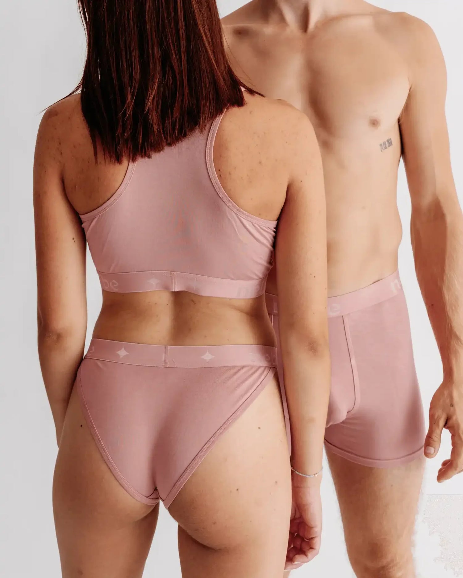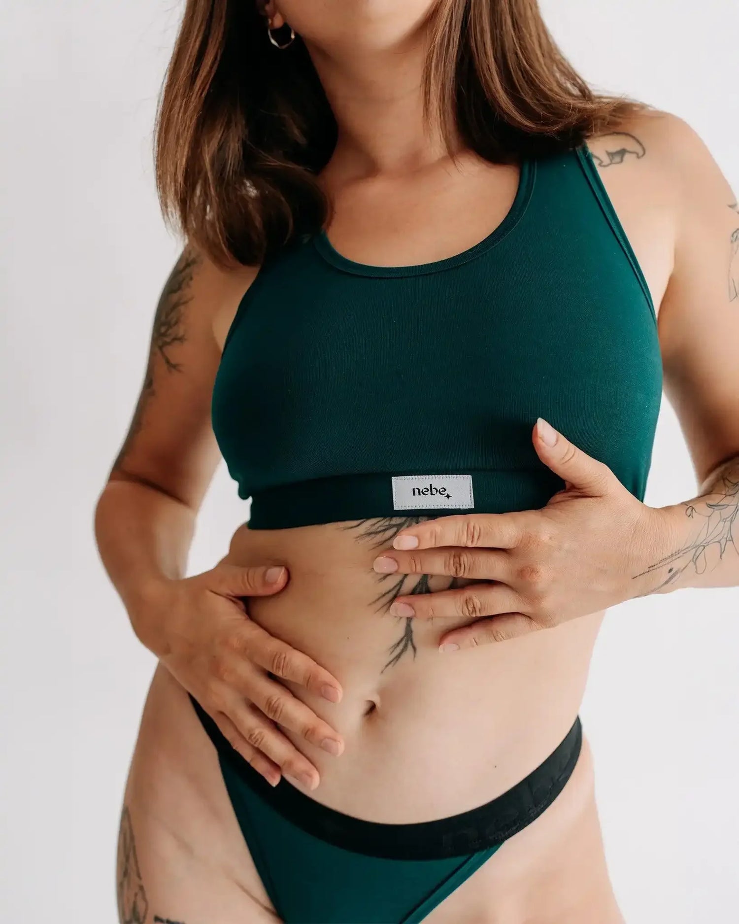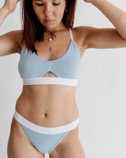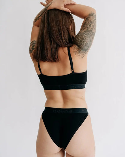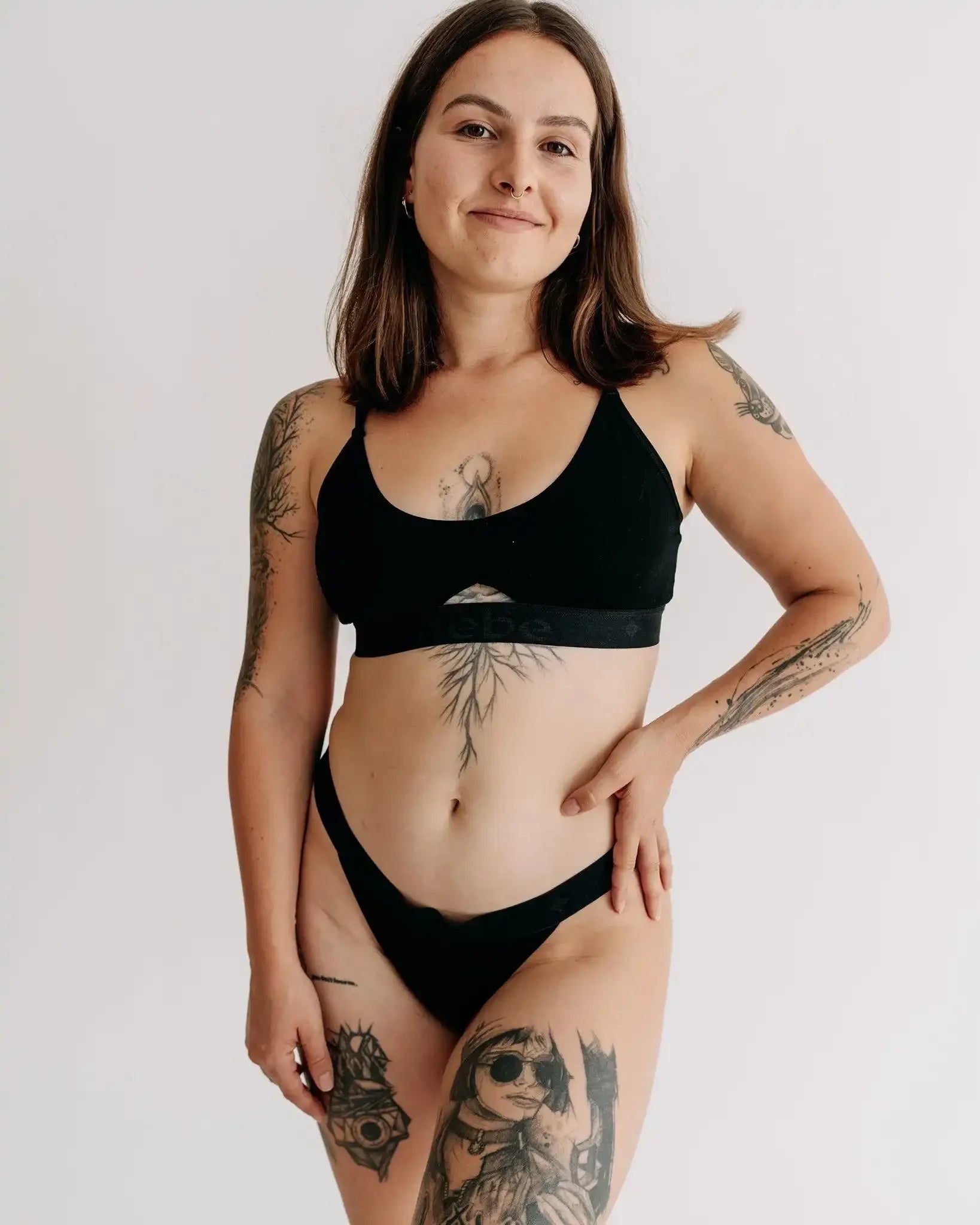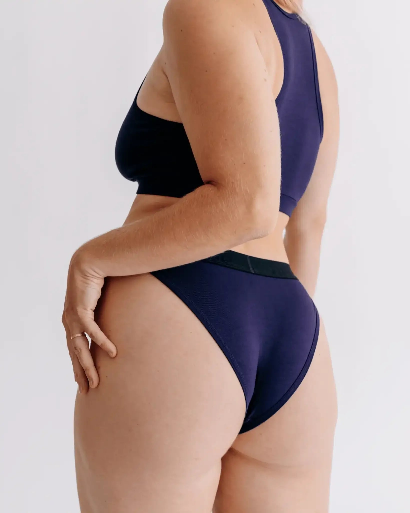 Aura je naše srdcovka. Ať už jako brazilky, nebo právě jako klasické kalhotky. Vážně. Jsou precizně padnoucí, z bambusu a poskytnou pocit ženskosti a sebevědomí po celý den. Minimalistický design doplňuje široká pruženka v pase s logem nebe. Ta zajistí pohodlné nošení bez obav o otlačení nebo nepříjemné škrábání.