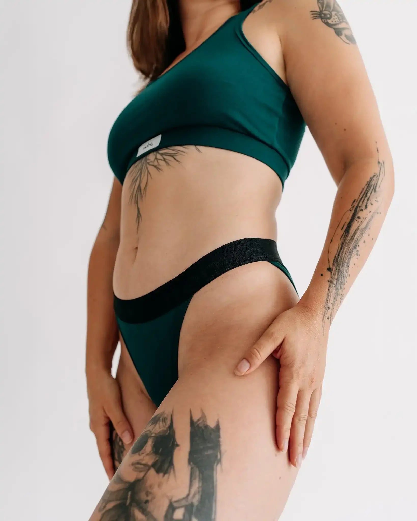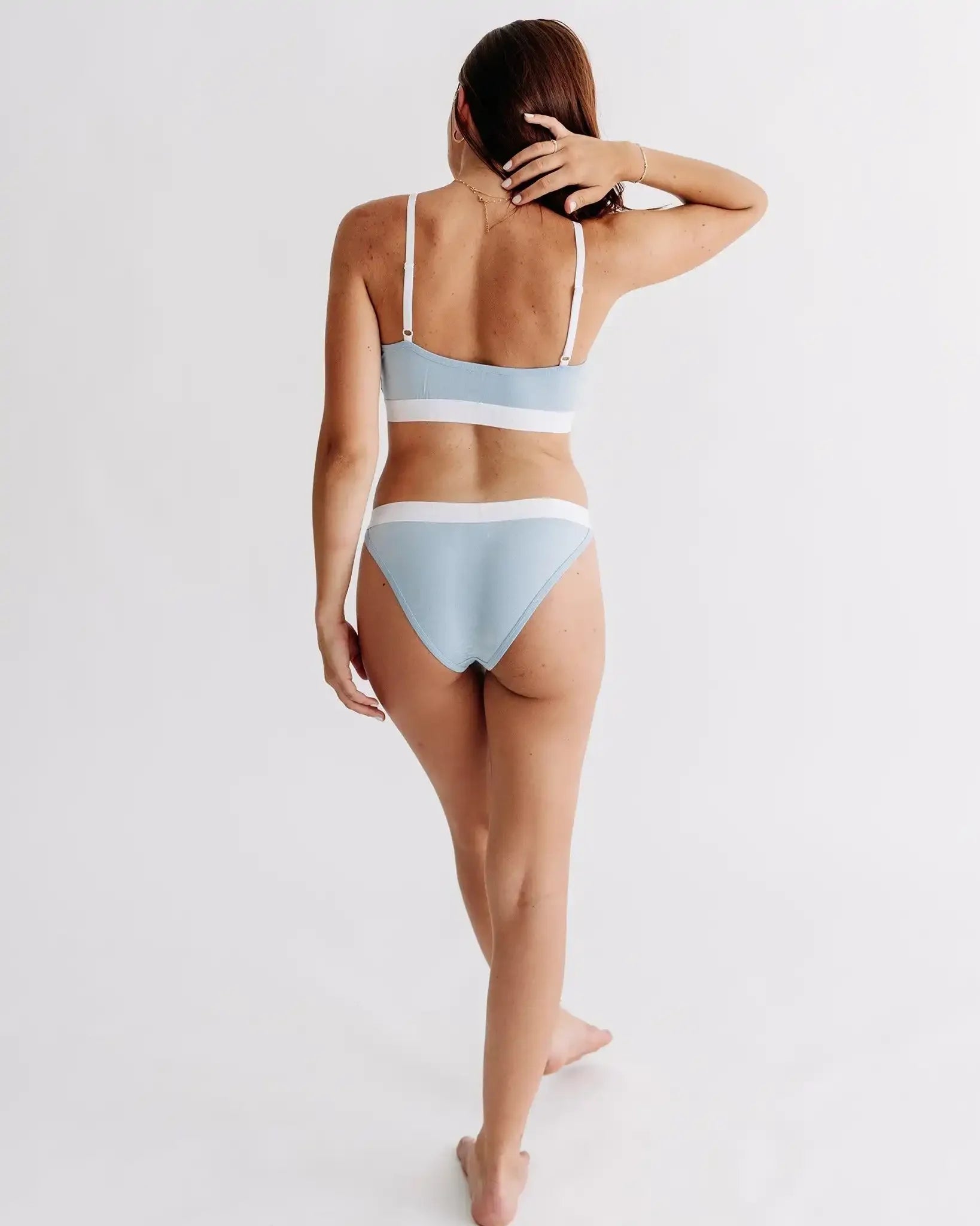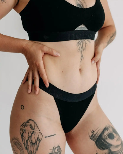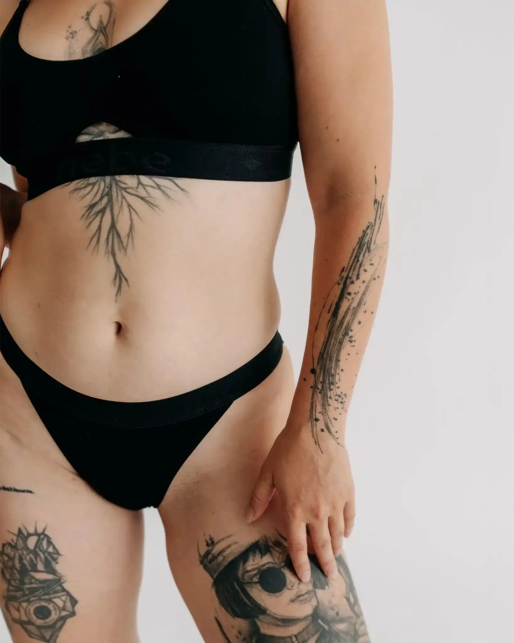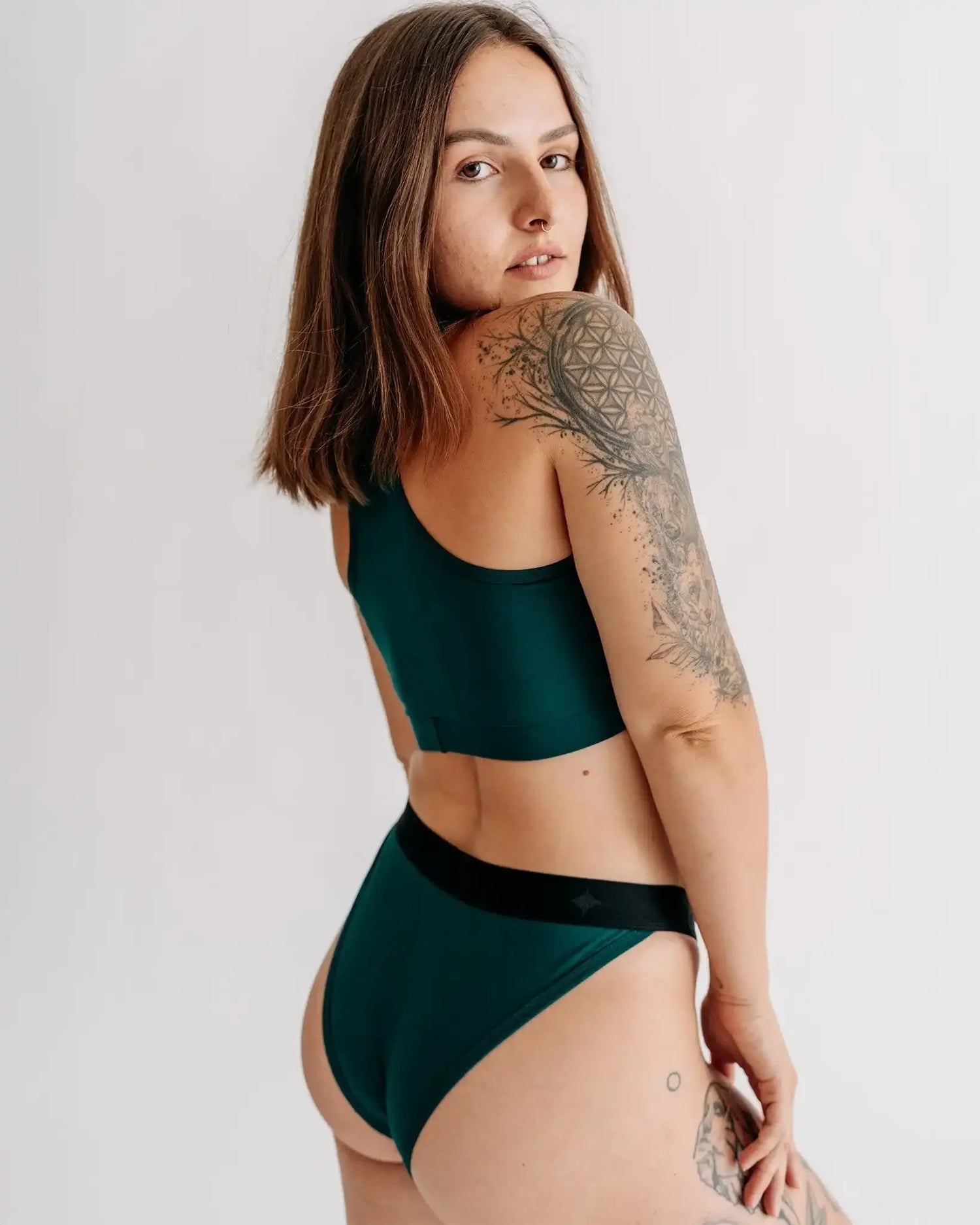 Aura je naše srdcovka. Ať už jako brazilky, nebo právě jako klasické kalhotky. Vážně. Jsou precizně padnoucí, z bambusu a poskytnou pocit ženskosti a sebevědomí po celý den. Minimalistický design doplňuje široká pruženka v pase s logem nebe. Ta zajistí pohodlné nošení bez obav o otlačení nebo nepříjemné škrábání.